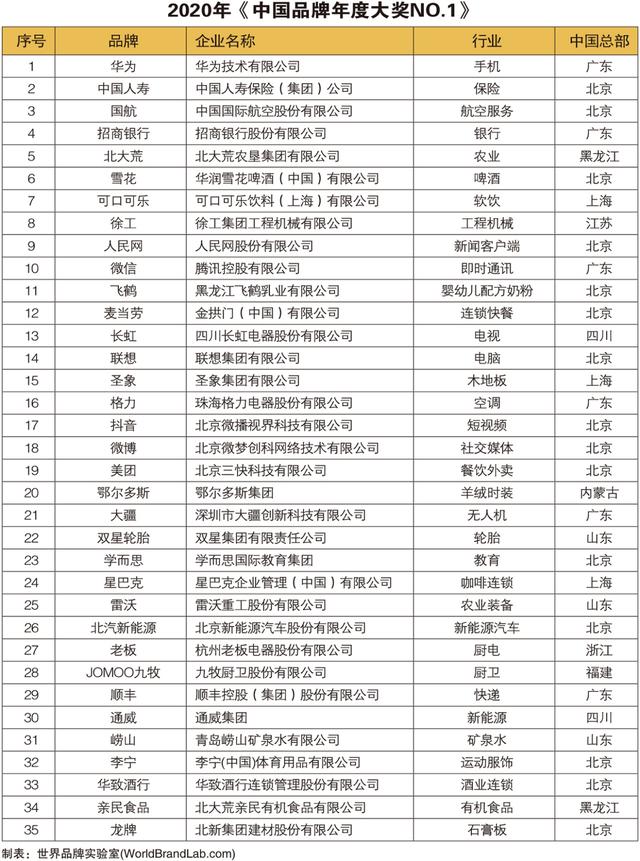 2020年“中国品牌年度大奖”评选揭晓,这项被誉为“中国品牌奥斯卡”的年度奖项,由业界权威机构世界品牌实验室(World Brand Lab)于12月22日在北京颁发。华为、国航、北大荒、雪花、徐工、双星轮胎、飞鹤、圣象和九牧等35个活跃在2020年度中国经济舞台的领军品牌入选“2020中国品牌年度大奖”。哈佛商学院工商管理教授乔治·塞拉芬(George Serafeim)博士和欧洲工商管理学院营销学教授皮埃尔·尚登(Pierre Chandon)博士出席会议并做在线演讲,围绕“品牌向善:世界品牌如何参与绿色复苏”的大会主题,和现场嘉宾互动研讨。